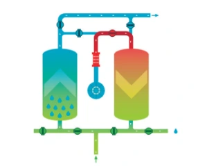 Khi một tháp ở chế độ hấp phụ thì tháp kia ở chế độ tái sinh. Quá trình tái sinh chất hấp phụ tiêu thụ nhiệt từ lò sưởi điện và một lượng nhỏ khí nén thành phẩm. Đối với model không tiêu thụ không khí, không khí tái tạo có thể được tái chế.
