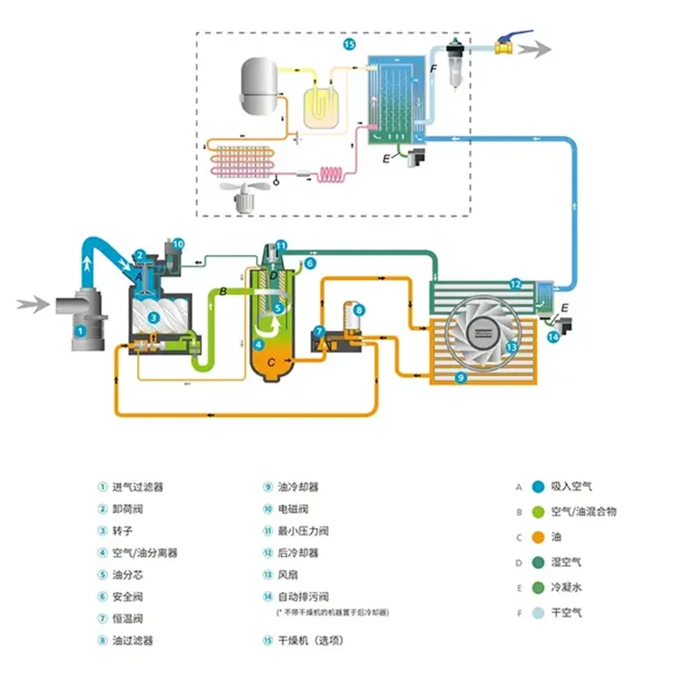 •Bộ tách nước-hơi cơ học tích hợp có thể loại bỏ gần 100% nước ngưng tụ