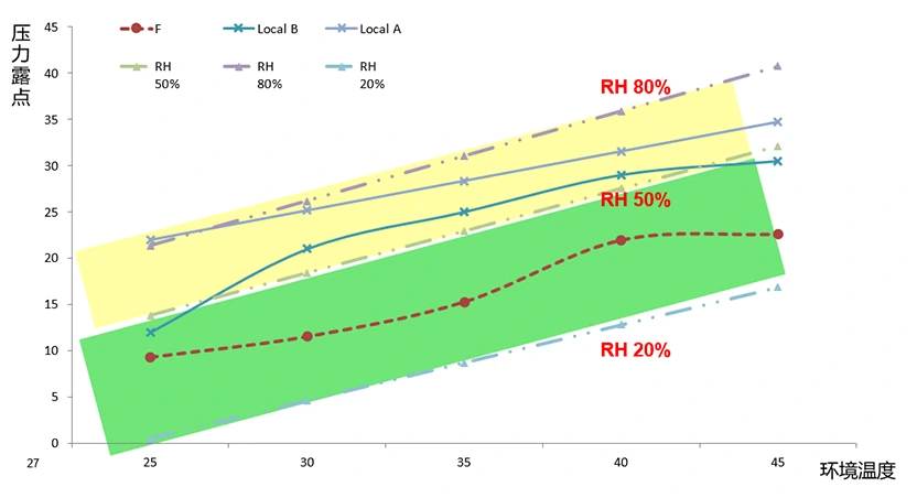 Như thể hiện trong dữ liệu đo được bên dưới, với áp suất khí nén đầu vào là 7 Bar, nhiệt độ đầu vào là 35°C, điểm sương áp suất là 7°C và nhiệt độ khí thải cuối cùng là 25°C, độ ẩm tương đối của không khí là 30%, ngăn chặn hiệu quả sự ăn mòn đường ống và thiết bị sử dụng không khí.