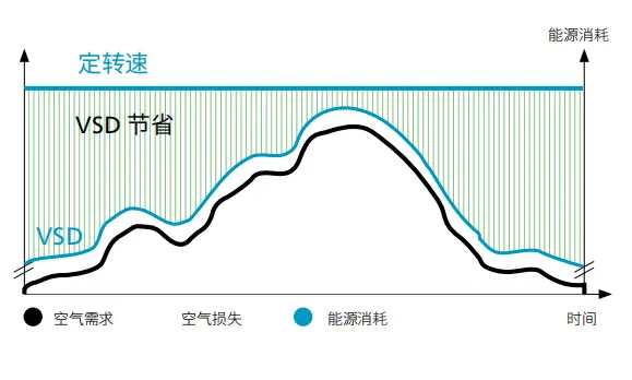 Mức tiêu thụ năng lượng của máy nén chiếm hơn 70% chi phí toàn bộ vòng đời và việc sản xuất khí nén tiêu thụ hơn 40% tổng hóa đơn điện của nhà máy. Để giảm mức tiêu thụ năng lượng, Atlas Copco đã phát triển Máy nén khí bôi trơn bằng nước không dầu VSD. Công nghệ VSD không chỉ tiết kiệm nhiều năng lượng mà còn bảo vệ môi trường cho các thế hệ tương lai. Nhờ liên tục đầu tư vào công nghệ này, Atlas Copco cung cấp nhiều loại máy nén khí dẫn động tốc độ thay đổi (VSD) trên thị trường.